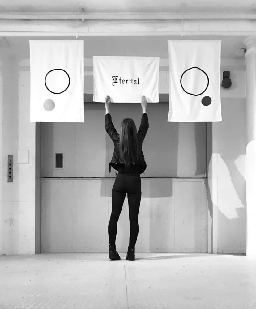 HF: The pieces I chose to show at “Practice” focus on the areas in which I tend to struggle. If you repeatedly struggle with something, it will probably continue to happen until you examine your behavior and decide to take action to rectify it, right? I see a correlation between that idea, the idea of sympathetic magic, and what I did when I made those particular flags. Action in the name of change can look different for everybody. For me, artistically, it was about placing my struggles alongside the great concept of eternity.