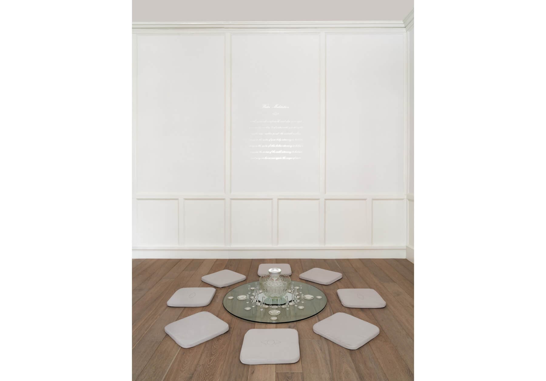 The show opens in a darkened gallery with a sight that seems pulled from a dream: water flowing down (or is it up?) the museum’s centerpiece, a 1792 flying double staircase designed by Charles Bulfinch for a merchant’s nearby mansion that later housed the McLean Asylum for the Insane. No architectural treasures have been harmed during the course of the exhibition—Georgie Friedman’s video installation Confluere (Latin for “to flow together”) delivers the impossible image of a natural force overrunning an exquisite, emphatically manmade form without inflicting any damage, each step shimmering with refracted light. This installation, like the other two video works in this room, is silent, but Dialogues with Water, a series of soundscapes created by Northeastern music students guided by Professor Hubert Ho, supplies ambient splashes and crashes.